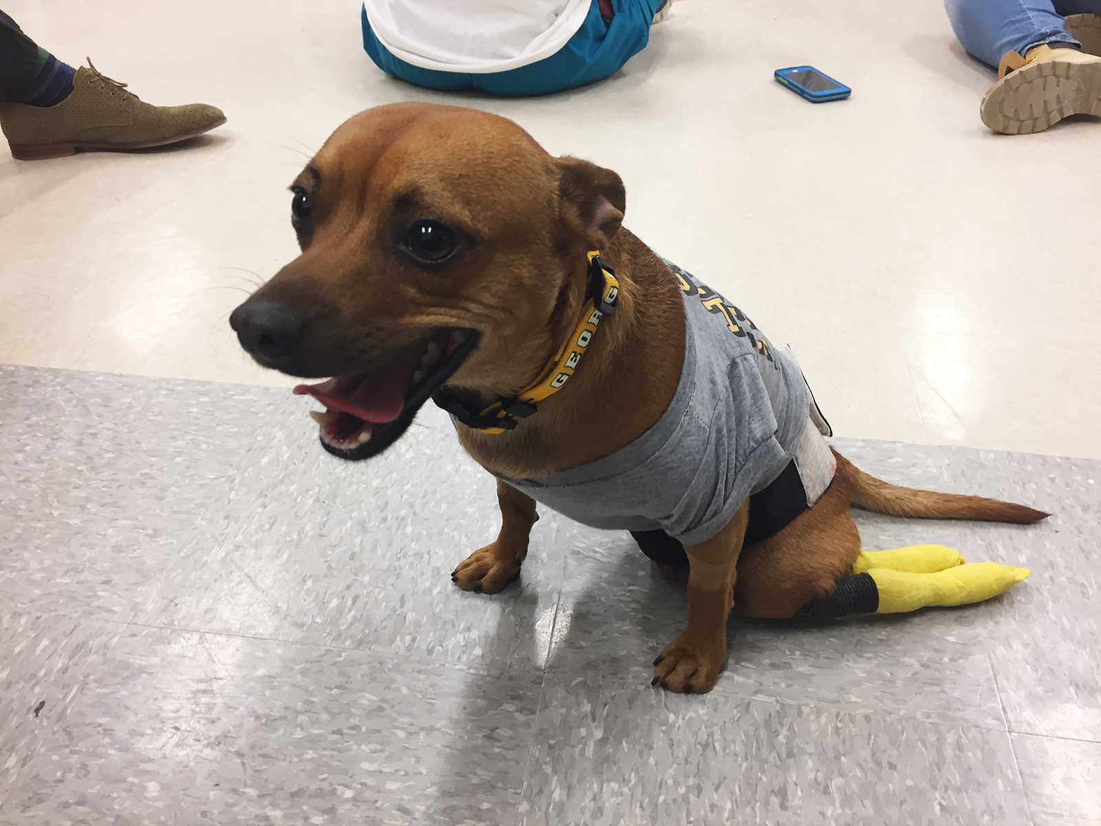 Georgia Tech students in the Master of Science in Prosthetics and Orthotics program are working to help Ryker, a two-year-old beagle-Chihuahua mix, get mobile again after he was paralyzed by a BB gun pellet in July 2017.